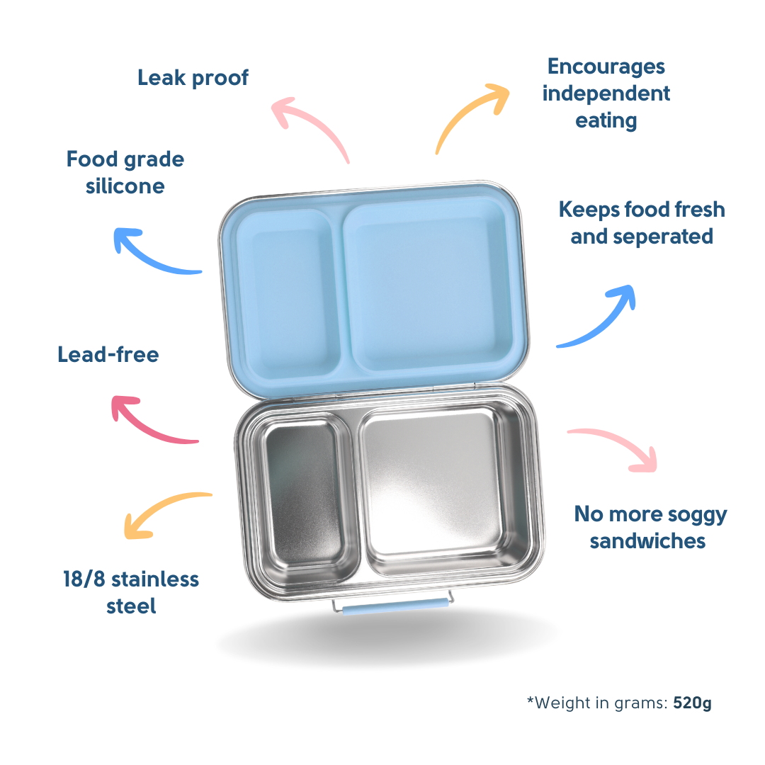 With 2 individually sealed compartments, this bento lunch box makes it easy to pack a balanced meal without flavours mixing. The large main compartment is perfect for sandwiches, pasta salads, or leftovers, while the second section is ideal for snacks, fruit, or yoghurt. A side latch that’s easy for little hands to open and close adds everyday convenience.